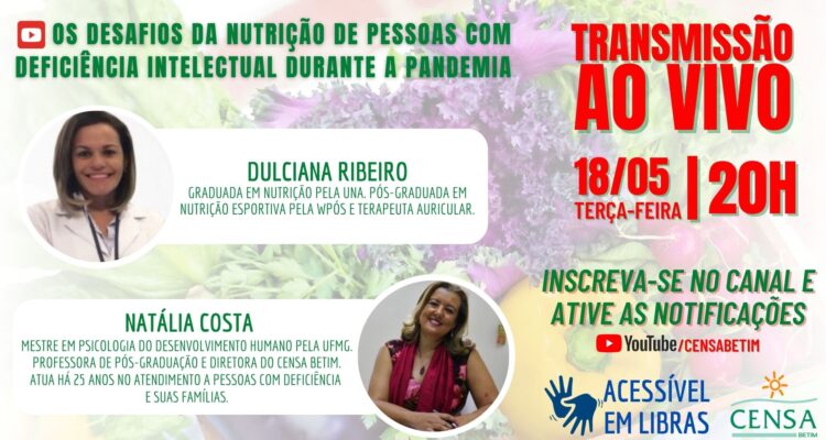 Os desafios da nutrição de pessoas com deficiência intelectual durante a pandemia é tema de live Redacao Ultima Notícia 14 de maio de 2021 Notícias, Saúde e Vida Divulgação da live. Transmissão ao vivo, que acontece no dia 18 de maio, pelo YouTube, com tradução simultânea em libras, contará com a participação de duas profissionais do CENSA Betim: a nutricionista Dulciana Ribeiro e a psicóloga e diretora Natália Costa O CENSA Betim, que é referência nacional nos cuidados a pessoas com deficiência intelectual, realizará uma live que abordará os desafios da nutrição na instituição durante a pandemia de Covid-19. A transmissão, conduzida pela nutricionista Dulciana Ribeiro e a psicóloga e diretora do CENSA Betim, Natália Costa, acontece no dia 18 de maio, terça-feira, às 20h, no Youtube, com tradução simultânea em libras. De acordo com Natália Costa, ideia é mostrar para os espectadores, que todos os cuidados são necessários e que a nutrição também merece atenção. “Vale lembrar que a alimentação saudável é uma forma mais eficiente para a prevenção de doenças. Reforçar a imunidade e manter o organismo saudável são os objetivos principais na formulação do cardápio do CENSA. A atuação da nossa nutricionista é essencial, principalmente neste momento de pandemia, tanto para definir o que vamos servir aos nossos educandos, quanto para balancear de acordo com as necessidades nutricionais”, explica. Esta é a quarta live da série realizada pelo CENSA Betim. Para acompanhar, basta acessar o canal da instituição no YouTube, fazer a inscrição e ativar as notificações para que a plataforma avise quando novas transmissões e conteúdos forem disponibilizados. Acesse o link direto para a live e ative o lembrete: https://youtu.be/g62FqLEWr-M Sobre Natália Costa Mestre em Psicologia do Desenvolvimento Humano com ênfase em Diferenças individuais pela FAFICH / UFMG, professora de cursos de pós-graduação na área de educação e saúde e diretora do CENSA Betim. Atua há mais de 25 anos no atendimento a pessoas com deficiência intelectual e suas famílias. Sobre Dulciana Ribeiro Nutricionista graduada em Nutrição pela Una e Pós-Graduada em Nutrição Esportiva pela WPós e Terapeuta Auricular. CENSA Betim Fundado em 1964, o CENSA Betim é referência nacional nos cuidados a pessoas com deficiência intelectual, associada ou não a outros transtornos, e da sua família, assegurando-lhes qualidade de vida e uma educação socializadora. A instituição conta com uma equipe transdisciplinar, composta por profissionais da medicina, psicologia, psiquiatria, além de cuidadores e educadores. Se destaca por oferecer uma proposta diferenciada, com atividades esportivas e recreativas, escolaridade especial, equitação e oficinas de música, teatro e artesanato, em um ambiente familiar e integrado à natureza. Serviço: Live: Os desafios da nutrição de pessoas com deficiência intelectual durante a pandemia Data: 18 de maio | terça-feira Horário: 20h YouTube CENSA Betim: https://www.youtube.com/censabetim CENSA Betim Rodovia Fernão Dias, Km 494 – S/N Betim – MG Instagram: @censabetim Facebook: https://www.facebook.com/censabetim/ Site: www.censabetim.com.br YouTube: https://www.youtube.com/censabetim atualizado em 14/05/2021 - 17:53 comentários
