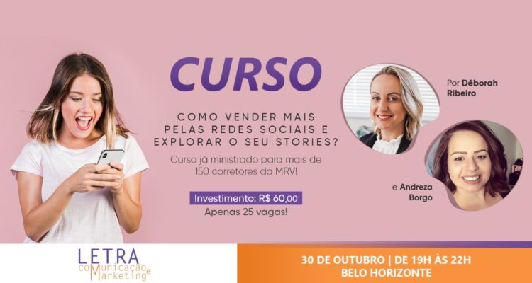 Para evidenciar ainda mais a importância das redes sociais, o uso dos stories com qualidade e ensinar os principais truques da ferramenta, Déborah Ribeiro e Andreza Borgo se juntaram para ministrar o curso “Como vender mais pelas redes sociais e explorar seus stories?”. Quer aprender mais sobre como utilizar as suas redes sociais e se aproximar do seu público a partir dos stories? Faça sua inscrição e conheça as principais formas de se destacar no mercado.