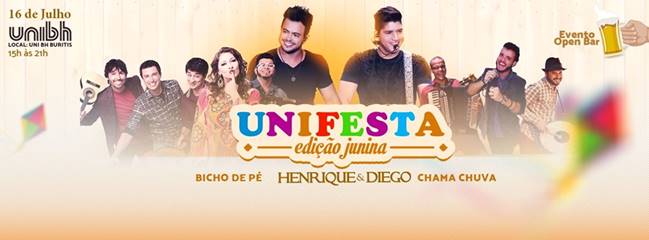 UNIFESTA reúne Henrique & Diego, Bicho de Pé e Chama Chuva em Belo Horizonte Redacao Ultima Notícia 10 de junho de 2016 Cultura, Economia, Notícias Festa universitária será realizada no dia 16 de julho no UNI BH Estoril Quadrilha, comidas típicas, gente bonita, decoração temática e muito forró e sertanejo embalarão a primeira edição da UNIFESTA. No dia 16 de julho, sábado, a partir das 15h, o campus do UniBH Estoril (Av. Professor Mário Werneck, 1685 – Estoril) será palco para o sertanejo de Henrique & Diego e o forró dos grupos Bicho de Pé e Chama Chuva. O evento é 100% open bar e serão disponibilizadas barraquinhas com comidas típicas para venda, como espetinhos, caldo de feijão, caldo de mandioca, cachorro quente, milho verde, pipoca, churros, docinhos e canjica doce. Realizado pelo DCE UNIBH, o evento contra com a produção da Solução em Eventos e IG Produções. Henrique & Diego Vindos de Cuiabá, capital do Mato Grosso, os jovens iniciaram na vida artística separadamente. Diego despertou o interesse pela música quando criança, já Henrique começou a cantar no grupo de jovens da escola. O encontro entre os dois aconteceu em 1998 e em 2009 eles gravaram o primeiro disco, Te Peço de Volta e de lá para cá mais três álbuns. Todavia, o sucesso só aconteceu mesmo após a gravação do disco Tempo Certo / Ao Vivo em Campo Grande, que traz os sucessos 5 Horas da Manhã, Suíte 14, Safadim, Safadim, Festa Boa e Oh Delícia. Bicho de Pé O Bicho de Pé é um grupo que compõe e toca música regional brasileira, com ênfase nos ritmos dançantes do Norte e Nordeste, como xote, baião, samba, forró, xaxado, maracatu, carimbó e arrastapé. Em 16 anos de carreira, produziu 4 CDS, 2 DVDs e 1 documentário. A banda já fez uma turnê pelos Estados Unidos e quatro turnês pela Europa. Já divulgou seu trabalho na Suíça, Alemanha, Holanda, Bélgica, Portugal, França, Itália, Finlândia, Rússia, Espanha, Áustria e Inglaterra. O grupo faz shows em todo o Brasil, principalmente nas cidades de São Paulo, Rio de Janeiro, Belo Horizonte, Brasília, Florianópolis e Salvador. Chama Chuva Com um DVD e nove CDs gravados, o grupo de forró pé-de-serra Chama Chuva está presente no mercado fonográfico há mais de 15 anos. Formado por Mozão Muniz (vocal e violão), Waguinho Vasconcelos (voz e triangulo), Dil Brasil (voz e zabumba), Fabiano Santana (voz e acordeão) e Roni Souza (voz e baixo), além de uma equipe técnica profissional, o grupo surgiu em cenário cultural brasileiro riquíssimo: Vila de Itaúnas -E.S. (Dunas de Itaúnas), em 1999. O Chama Chuva começou sua trajetória musical, emplacando grandes sucessos em seu primeiro CD. Samarina, Cativeiro Coração, Esse Bicho Mata, Um pouquinho de você, e A novidade, são músicas que tiveram naquela época, e ainda tem, grande aclamação do público. Serviço: UNI Festa Data: 16 de julho, sábado Horário: 15h Local: Campus do UniBH Estoril (Av. Professor Mário Werneck, 1685 – Estoril) Atrações: Henrique e Diego (Sertanejo) Bicho de Pé (Forró) Chama Chuva (Forró) Ingressos: Área Open Bar (vodka, cerveja, catuaba, refrigerante e água) Pré-lote: R$ 70,00 (meia entrada) 1º lote a definir 2º lote a definir 3º lote a definir Camarote Open Bar: Tequila, vodka, cerveja, catuaba, energético, refrigerante e água. Pré-lote:- R$ 120,00 (meia entrada) 1º lote a definir 2º lote a definir 3º lote a definir Alunos do Uni BH tem desconto – procure o DCE Vendas online: http://www.centraldoseventos.com.br/comprar/uni-festa-edicao-junina-16-de-julho Pontos de vendas Central dos Eventos: Savassi – Rua Fernandes Tourinho 470, Loja 16 Galeria C&A no Centro | Big Shopping Contagem Shopping Pampulha Via Brasil | Shopping Sete Lagoas BH Shopping | Loja Chilli Beans Pátio Savassi | Loja Chilli Beans Minas Shopping | Loja Chilli Beans Vendas DCE Uni BH Buritis | Antônio Carlos | Lourdes | Cristiano Machado Mais informações: 4141 2929 Realização: DCE UNIBH Produção: Solução em Eventos e IG Produções Apoio: DUE UNIBH Classificação: 18 anos Assessoria de Imprensa: Grupo Balo de Comunicação – www.grupobalo.com Heberton Lopes – hlopes@grupobalo.com – (31) 3077 0606 | (31) 98988 7616 Heberton Lopes Diretor e jornalista responsável E-mail: hlopes@grupobalo.com Skype: hebertonlopes Telefones: +55 31 3077 0606 | +55 31 98327 5743 (WhatsApp pessoal) Plantão GBC 24 horas: +55 31 98988 7616 (WhatsApp corporativo) Curta o #GBC no Facebook: https://www.facebook.com/grupobalocom Siga o #GBC no Instagram: @grupobalo Acesse o nosso site: www.grupobalo.com comentários