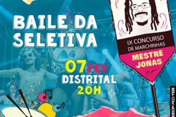 Conheça as 15 Marchinhas e as 5 candidatas a Hit do Carnaval 2020 do 9º Concurso de Marchinhas Mestre Jonas Redacao Ultima Notícia 5 de fevereiro de 2020 Cultura, Notícias Baile da Seletiva acontece nesta sexta-feira, 07/02, no Distrital Na sexta-feira, 07 de fevereiro, a partir das 20h, o Distrital (Rua Opala, s/n, Cruzeiro) recebe o "Baile da Seletiva do Concurso d... Leia mais...